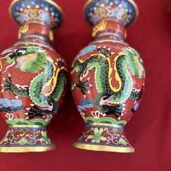 Chinese Cloisonné enamel vases, likely made of brass, featuring dragon$175Irvine, CA