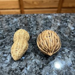 Vintage Ceramic Walnut Shape and Peanut Shape pair of Salt and Pepper Shakers. Preowned the bottom has some writing of the person who gave as a gift.$15Artesia, CA
