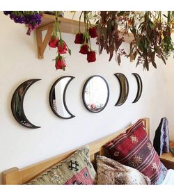 Keweis 5 Pieces Scandinavian Natural Decor Acrylic Wall Decorative Interior Design Wooden Moon Phase Mirror Bohemian Wall Decoration for Home Living R$9City Of Industry, CA