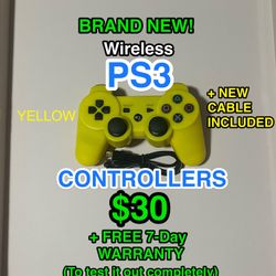 ๐ฎ NEW PS3 Wireless Controllers (YELLOW) w/ Cable ๐ฅ$30Paramount, CA