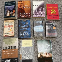 Fahrenheit O.Henry Trial Brave New Slaughterhouse Monster Calls Ocean at the end And then there were If I Stay Nietzsche Execution$35San Gabriel, CA