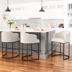 27"H Fabric Upholstered Bar Stools, Beige (Set of 3)$185Irvine, CA