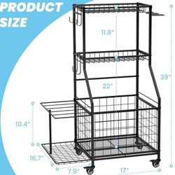 WUC Sports Equipment Organizer, Garage Ball Storage Rack with Basket & Hooks, Heavy Duty Rolling Ball Carts with Wheels for Toy Sports Gear Storage, B$42Pico Rivera, CA