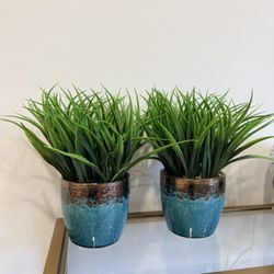 2 faux green plants in real & gold vases$15Santa Ana, CA