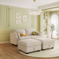 62" Beige Linen Modern Sectional Modular Storage Sofa / Lovseat w/ 2 Ottomans [NEW] **Assembly Req$300City Of Industry, CA
