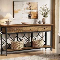 F2319 70.9-Inch Extra Long Entryway Table with 3 Drawers, Sofa Console Table with Open Storage Shelves, Wooden Couch Foyer Tables for Living Room Hall$130Artesia, CA