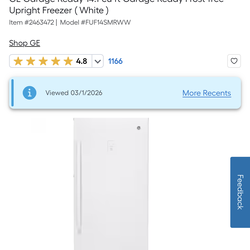 GE Garage Ready 14.1-cu ft Garage Ready Frost-free Upright Freezer ( White$500Santa Maria, CA