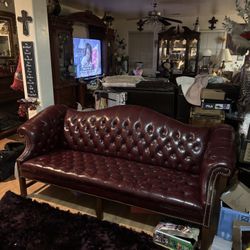 Red Burgundy Leather Couch Turns Into A Bed $100Santa Barbara, CA