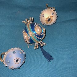 3 Vintage Mid Century Ornate Push Pin Beaded Satin Christmas Ball Ornaments$11Oceano, CA