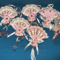 Vintage Ceramic Victorian "Folding" Fan Christmas Tree Ornament Flowers Figural$20Oceano, CA