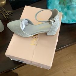 LAURMOSA Girls Dress Shoes Closed Toe Chunky High Heels Ankle Strap Pump Shoes Girls Size 13 Kids New Glitter Silver $20Hawthorne, CA