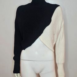 Express Black and Cream 51% Viscose Diagonal Ribbed Mock Neck Sweater Size XXS$55Los Angeles, CA