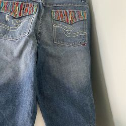 VINTAGE Y2K COOGI AUSTRALIA Baggy Denim Shorts - 3D Multi-Color Knit Pockets - Y2K Jorts - Size 40$35Pico Rivera, CA