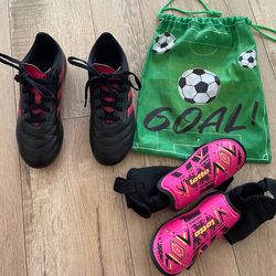 Adidas black/ pink sports cleats sz 2.5 Includes Shinguards And Green Bag$25Gardena, CA