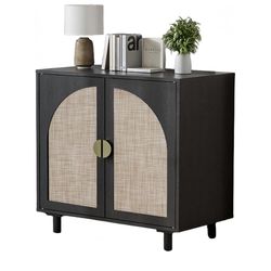 Assembled New Bathroom Black Rattan Sideboard Buffet Cabinet with Doors and Shelf, Rattan Accent Cabinet with Wood Feet$64Artesia, CA
