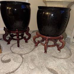 2 Ceramic pots with wood stand$80Los Angeles, CA