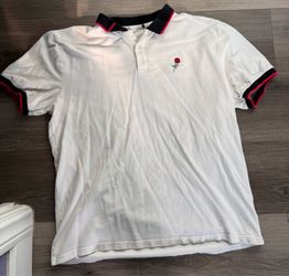 Forever 21 white polo with black collar shirt with rose patch infront size large$30Paramount, CA