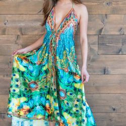 Hayley Menzies Charming Birds pink V-neck frill silk maxi dress size S small NWT$330Hermosa Beach, California