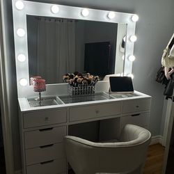 White Makeup Vanity with Lights, Mirror, Stool and Built-In Power Strip$139Los Angeles, CA