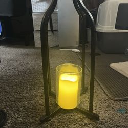 black metal lantern with a flameless LED pillar candle inside$15El Cajon, CA