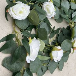 Faux Artificial Eucalyptus Greenery With White Roses, Green Faux Eucalyptus Garland$8Lemon Grove, CA