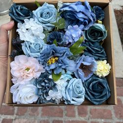 A Box Of Blue And Ivory Flowers For Baby Shower, Birthday, Party, Wedding, Centerpieces DIY$18Lemon Grove, CA
