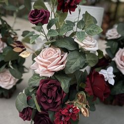 Ling’s Moment Beautiful Burgundy and Ivory With Eucalyptus Artificial Flowers, Aisle Flowers, Rose and Peony Flower Decor Arrangements $120San Diego, CA