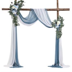 White And Blue Drapes Curtains Tulle Wedding Arch Arrangement $30Lemon Grove, CA