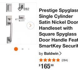 Prestige Spyglass Single Cylinder Satin Nickel Door Handleset with Square Spyglass Door Handle Feat SmartKey Security by Baldwin$95San Diego, CA