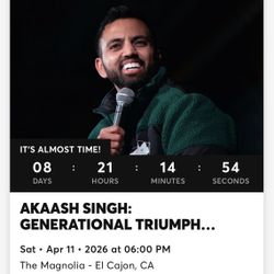 2 Akaash Singh Tickets - 3rd Row $180San Diego, CA