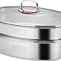 Eglaf 2-Tier Stainless Steel Fish Steamer - Multi-Use Square Steaming Cookware with Rack, Ceramic Plate, Chuck, Oven Mitts - Stockpot for Steaming Fis$50San Diego, CA