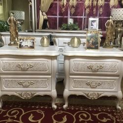 Beautiful French Boho Style Wooden Nightstands Colors White And Gold Metallic Set Has Been Refurbished No Damages $400San Diego, CA
