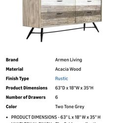 Armen Living Bridges 6 Drawer Dresser in Two Tone Acacia Wood$1,000Escondido, CA