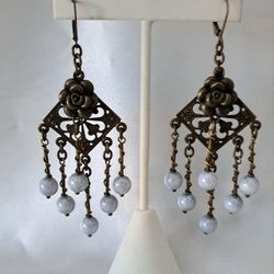 Vintage Antique Brass Chandelier Earrings With Ceramic Beads$32Escondido, CA