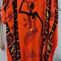 African Print Kaftan Tunic Dress Orange Black Dashiki One Size 100% Rayon $38San Diego, CA