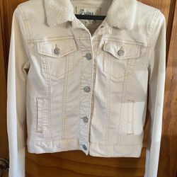 Mudd Women's Cream Colored Jean Denim Trucker Jacket Sherpa Collar Size S Mint$15Ramona, CA
