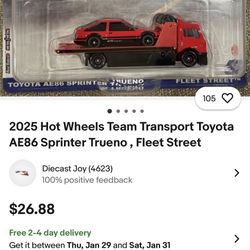 Toyota AE86 Sprinter Trueno Hot Wheels $25San Diego, CA