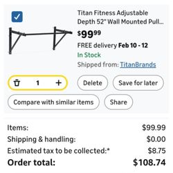 Titan Fitness Adjustable Depth 52" Wall Mounted Pull Up Bar, 14" or 22" From Wall, Rated 400 LB, Home or Garage$75Imperial Beach, CA