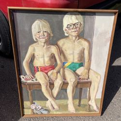 Vintage oil painting fine art oil painting on canvas depicting two children sitting on a bench.$400Chula Vista, CA