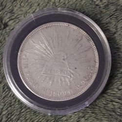 1882 Mexican Republic Libertad "Cap and Rays" 8 Reales silver coin. $180Chula Vista, CA