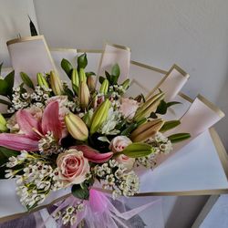 Pink Lilies And Roses Bouquet $80San Diego, CA