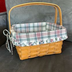 Double Handled Longaberger Basket With Fabric And Plastic Liner$45San Diego, CA