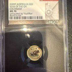 2009P Australia G$5 OX COLORIZED Lunar 1/20 oz Gold Coin NGC MS70 VaultBox🔥$380Lakeside, CA