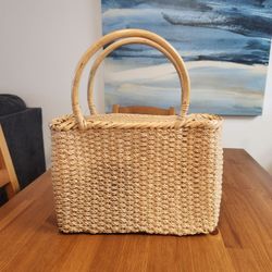 LIKE NEW Medium Sized Wicker Purse With Bamboo Handles & Zipper 13"Wx9"-15"H (SE San Diego)$15San Diego, CA