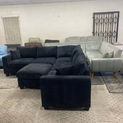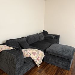 New 99x99 Black Corduroy Sectional Couch With Ottoman : Free Delivery $850San Diego, CA