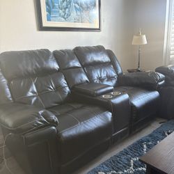 Brand New Black Synthetic Leather Blue LED Motorized Reclining Sofa + Loveseat With Bluetooth Speakers, Wireless Charging, Reading Lights, Cup Holders$1,799San Diego, CA