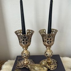 Vintage Pair 2- Brass Filigree Candle Holders Boho Ornate Mid Century Table decor Collectible Estate Find $54San Diego, CA