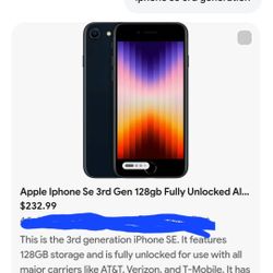 New Iphone Se 3rd Gen For Att And T And Unlocked.$105Carlsbad, CA