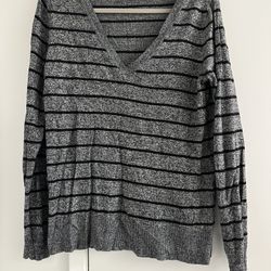 Mossimo Pullover Sweater Womens L Gray Striped V-neck Long Sleeve Sweatshirt$8San Diego, CA