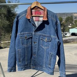 Vintage Marlboro Country Store Denim Jacket Leather Collar Plaid Lined XL$30Santee, CA